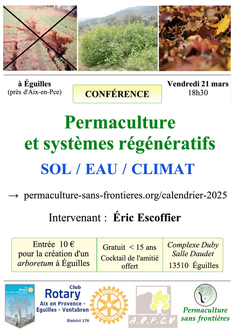 Aussi, le 30 mars 2025 aura lieu une randonnée botanique (à partir de 9h) au Domaine Saint-Martin à Éguilles avec des botanistes de l’association Les Naturalistes de l’Étoile, co-organisée dans le même cadre par le Rotary Club Aix-Éguilles-Ventabren et l’ARPCV.