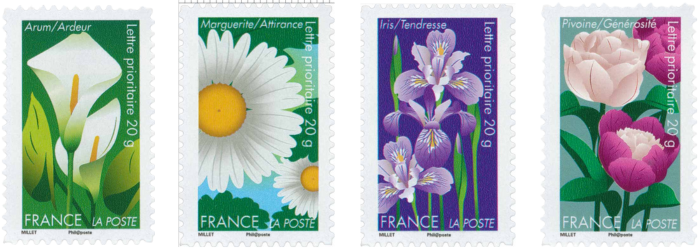 Cette série de timbres représente les quatre fleurs suivantes :